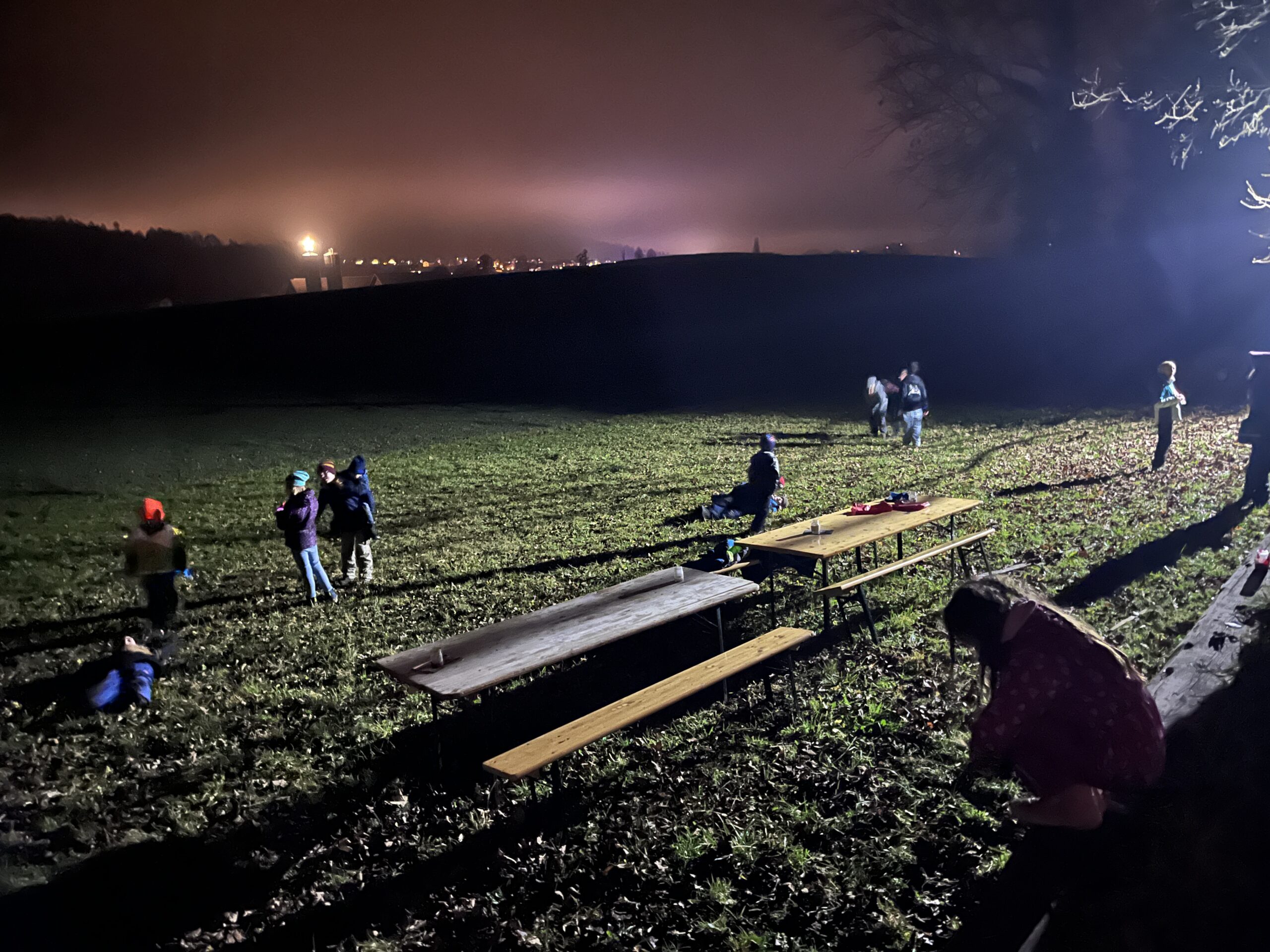 Wir haben das Pfadijahr 2025 an den diesjährigen Waldweihnachten richtig ausklingen können. Die Kinder konnten im Anhänger den Geschichten folgen, während die Eltern an den Feuern ihre mitgebrachten Würste brätelten und sich mit den anderen unterhalteten. Zur süssen Verpflegung gehörten natürlich der Pfadipunsch und die selbstgebackenen Guetsli von letztem Samstag. Die Abteilungsleitung brachte alle auf den neusten Stand der Dinge bezüglich Abteilung im nächsten Jahr.